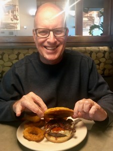 “I want a filthy hamburger.” And today, following a great appointment with the surgeon, that’s exactly what he got! Here’s the photo to prove it.